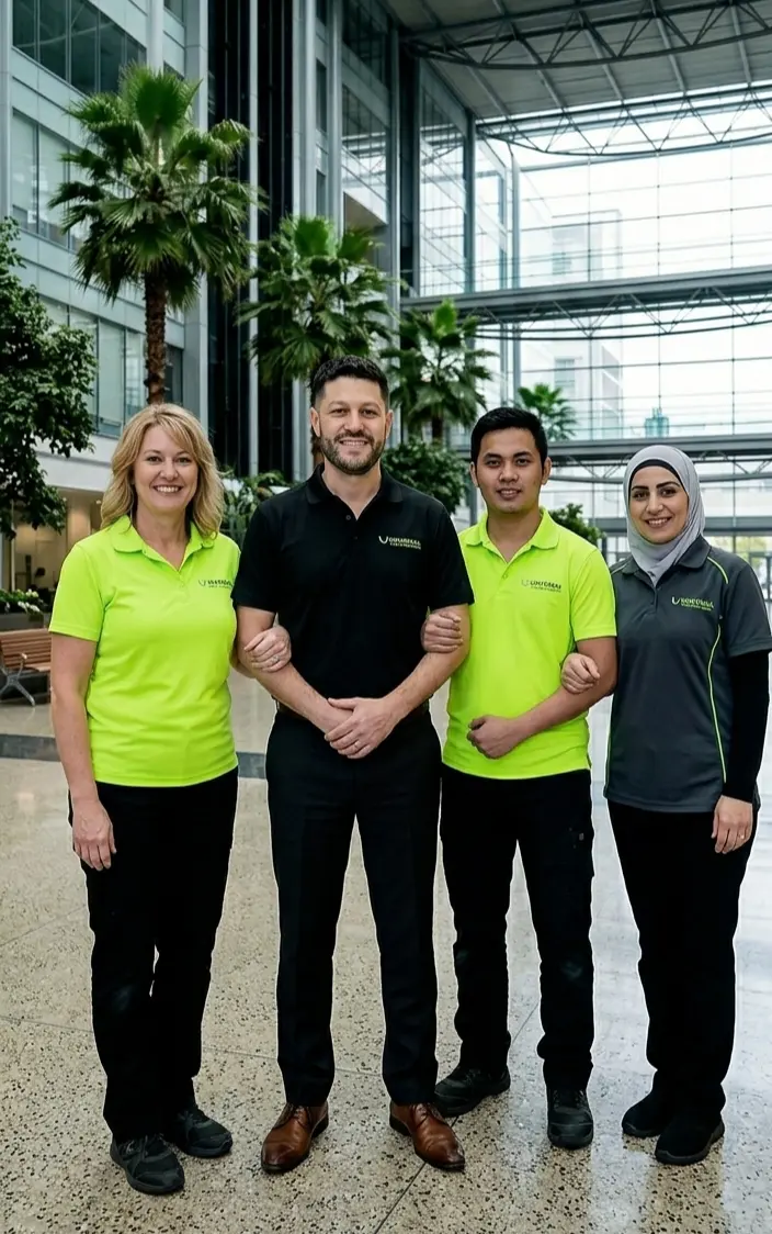 Identity: All UCI staff are easily identifiable in professional uniforms, reflecting the corporate standards of the clients we serve.